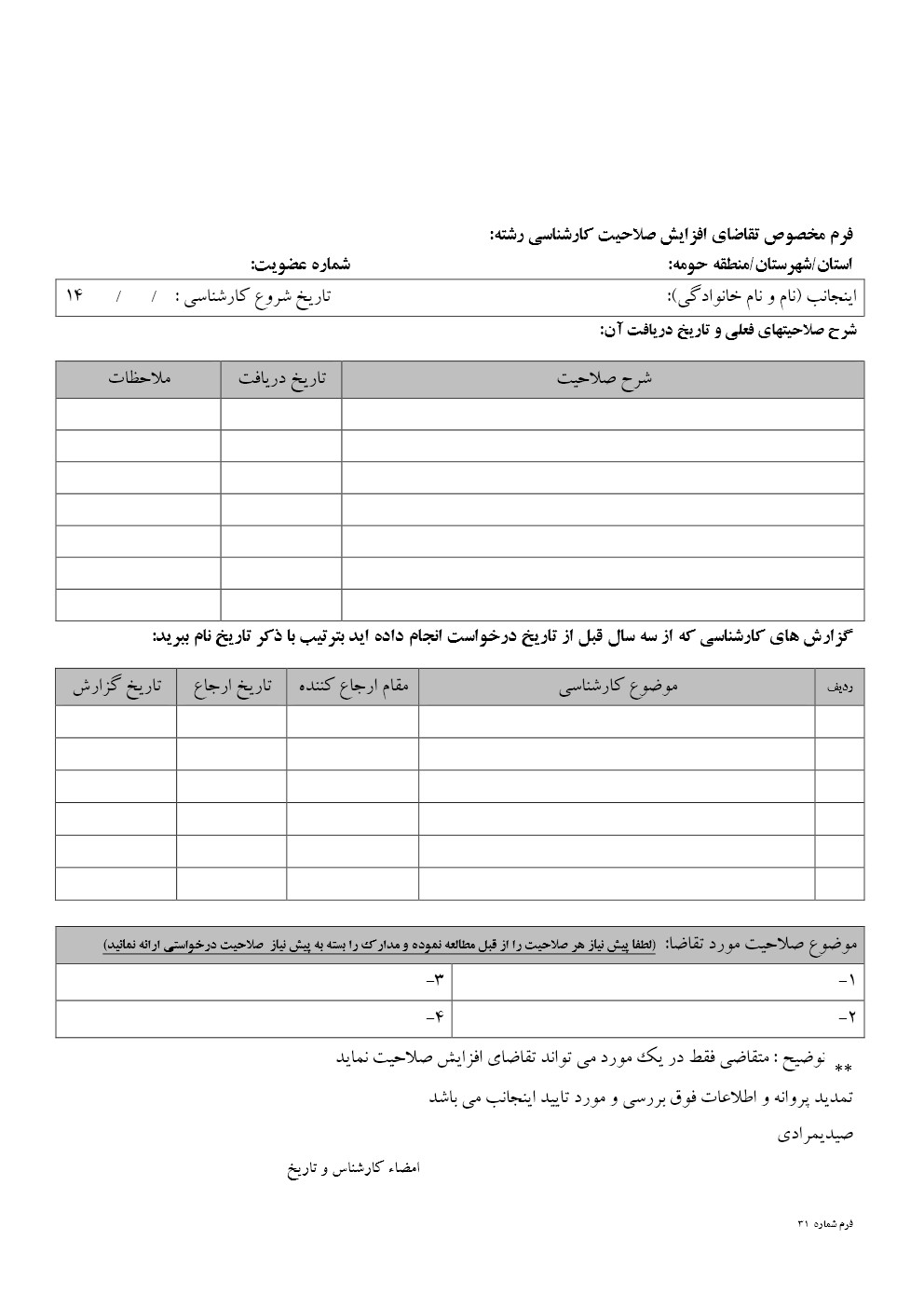 فرم افزایش صلاحیت تمامی رشته ها به صورت فایل ورد (جهت تایپ) + فایل PDF و تصویر جهت چاپ اقدام کننده: صیدیمرادی