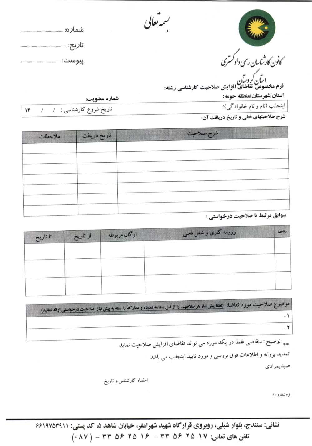 pdf جهت چاپ فرم افزایش صلاحیت کلیک فرمائید